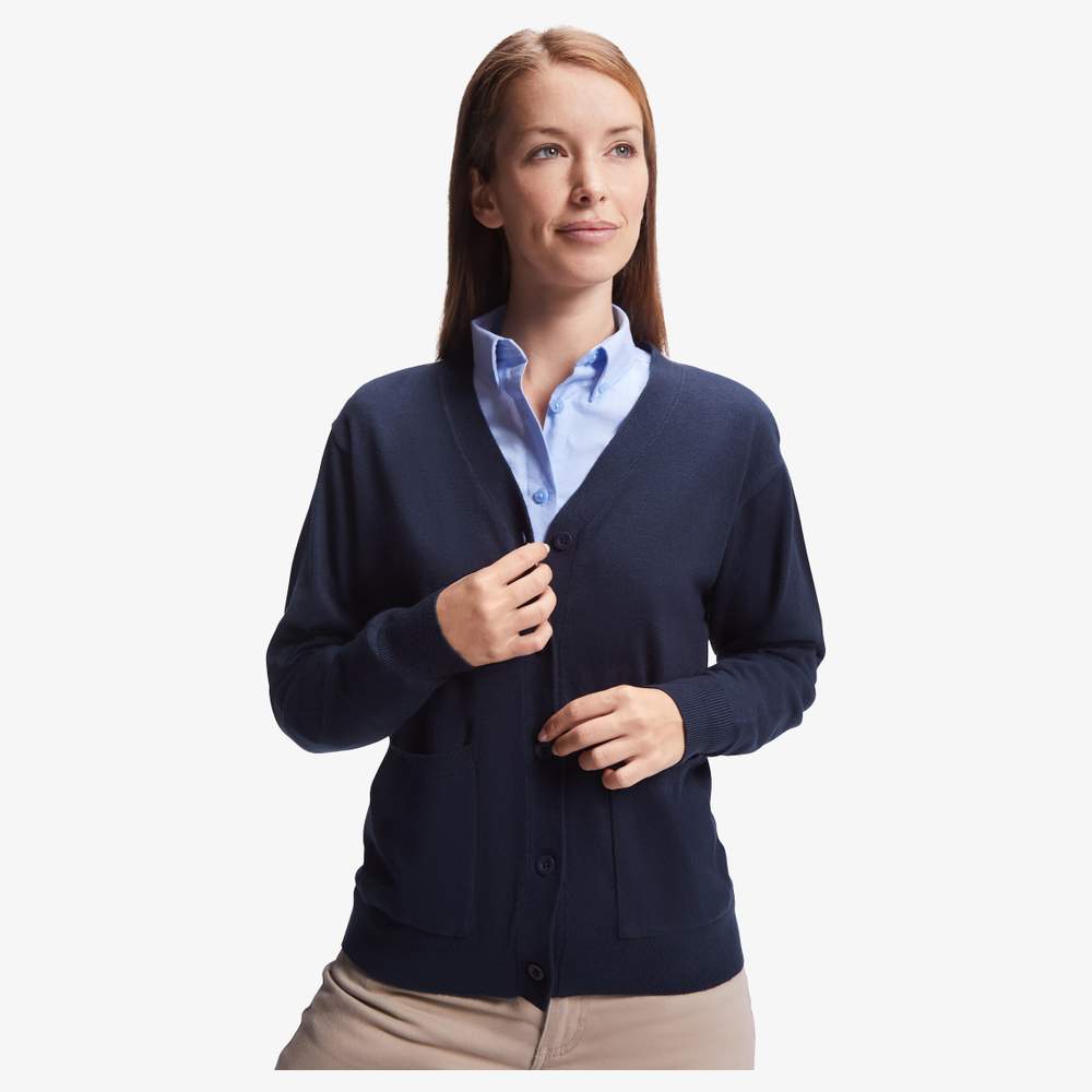 Gilete col V para mulher, concebido para oferecer conforto e funcionalidade. É confeccionado em tricot suave para uma sensação agradável ao usar. O fecho central com cinco botões assegura uma boa sustentação, enquanto os dois bolsos de peito oferecem um espaço de arrumação prático. Os punhos e a cintura elásticos em costura 1x1 asseguram um ajuste ótimo e confortável. A etiqueta destacável permite uma personalização fácil. Este gilete é uma escolha versátil para diversas ocasiões.