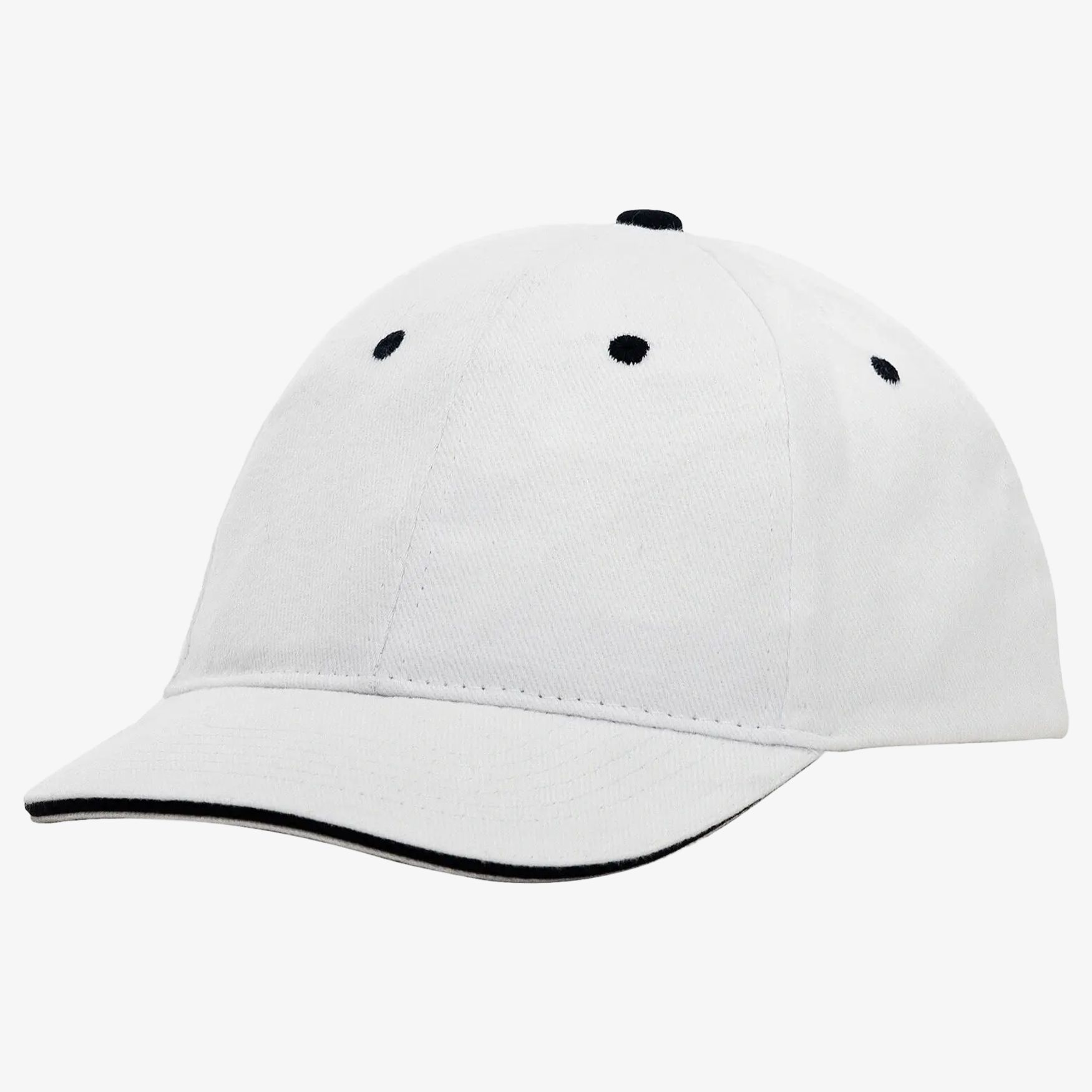 Capacete de seis painéis. Seis orifícios de ventilação. Seis linhas costuradas na visora. Borda da visora e dos orifícios contrastantes. Fita anti-sudorese. Fechamento traseiro com fita autoagripante. 100% algodão.