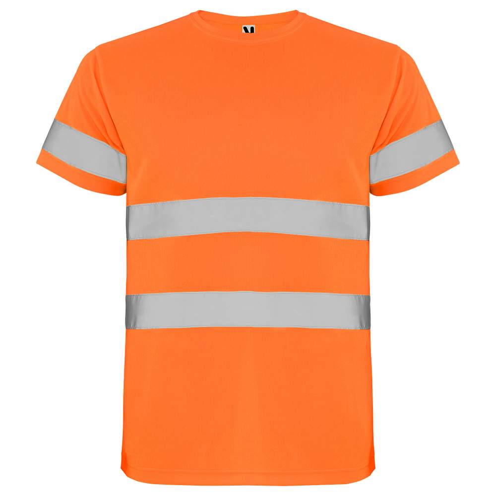 Camiseta técnica de mangas curtas de alta visibilidade. Colar redondo com o mesmo tecido e faixa de limpeza reforçada no interior do colar. Duas faixas refletoras horizontais no torso e uma nas mangas. Certificação CE conforme as normas: EN ISO 13688:2013/A1:2021 EN ISO 20471:2013/A1:2017. Classe I: 55221 - 55223 - 52221 - 23221. Classe II : 221 - 223. Tecido técnico. Alta visibilidade. Modelo respirável.