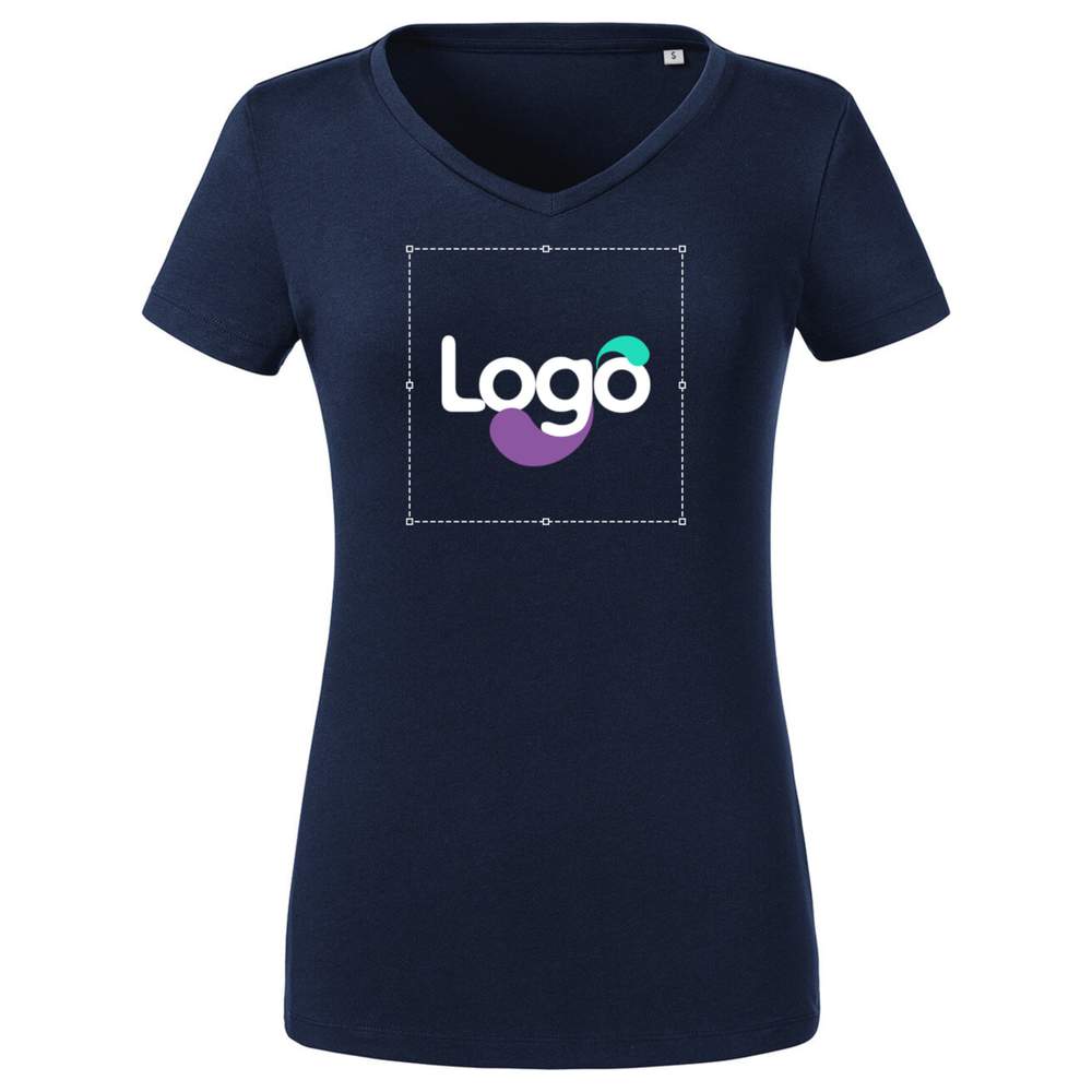 Camiseta de col V orgânica pura para mulheres -PURE-ORGANIC personalização r-103f-0 - French navy