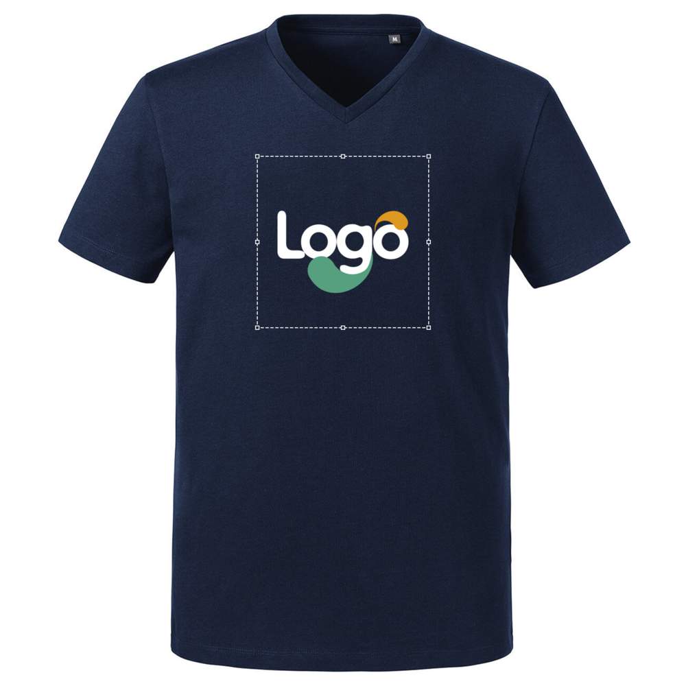 Camiseta de col V orgânica pura para homens -PURE-ORGANIC personalização r-103m-0 - French navy