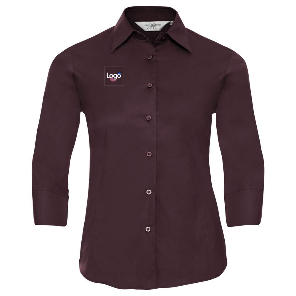 Camisa de manga três quartos ajustada e esticável para mulheres personalização r-946f-0 - Port plum