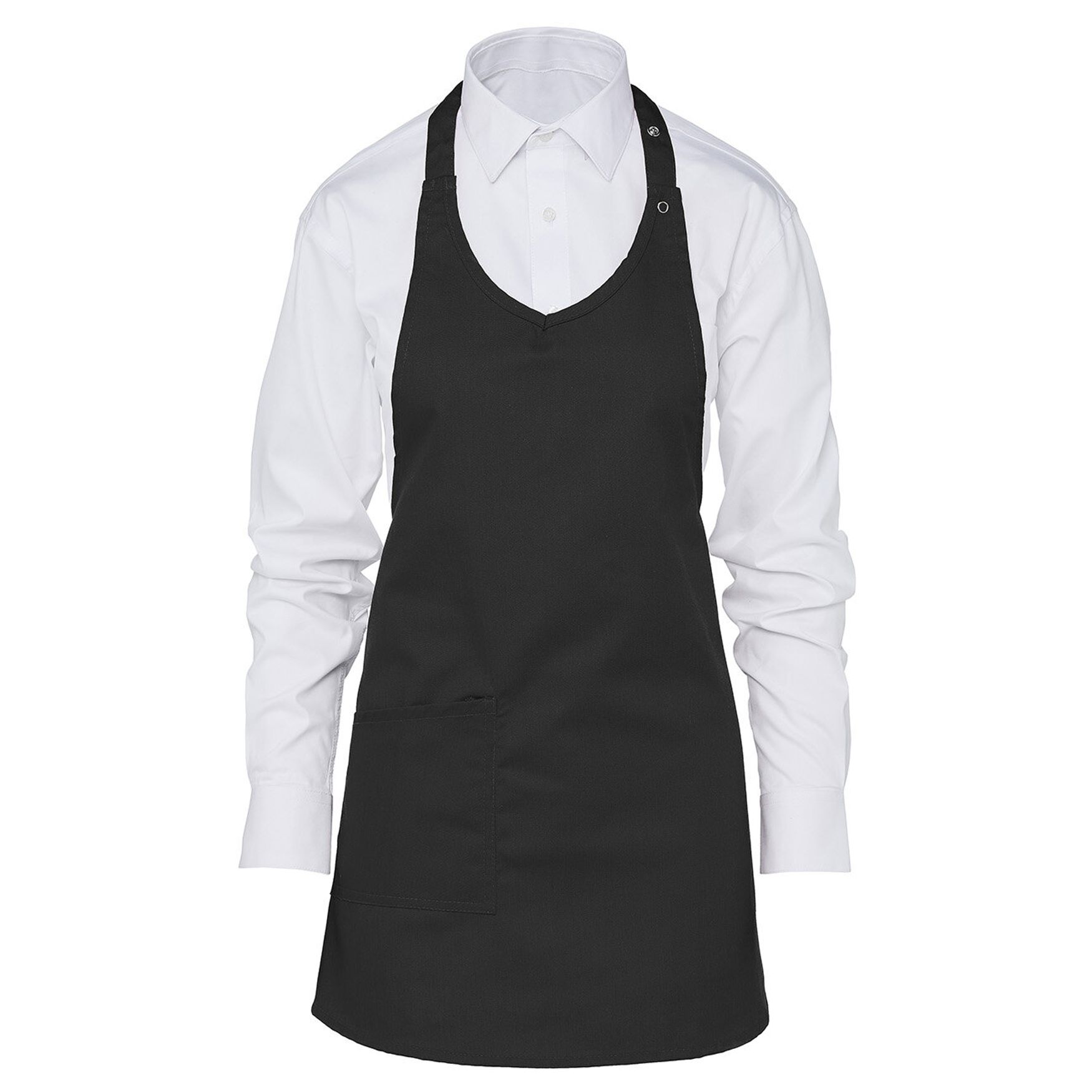 Este confortável avental curto com babador e colarinho em V, com fecho de pressão ajustável, é elegante e funcional. Possui um bolso frontal. O tecido é de policoton. É uma escolha prática e durável. Dimensões: 78 x 60 cm. Composição: 65% poliéster, 35% algodão. Possibilidade de personalização com bordado para um resultado único.