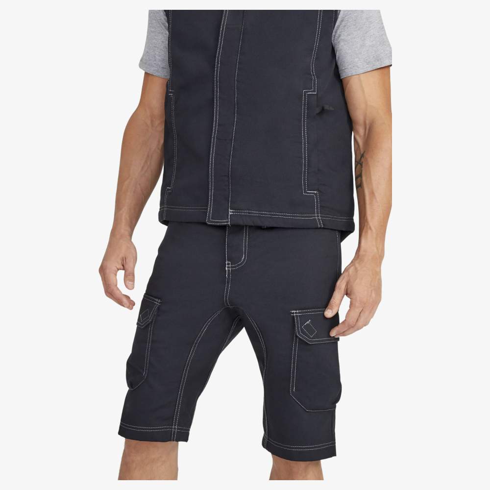 Calção Curto Bermuda Trabalho unicolor para homem. Este vestido integra um fecho de correr, passantes para cinto e uma cintura semi-elástica para um ajuste confortável. Ele dispõe de 7 bolsos: 2 bolsos laterais e 2 bolsos traseiros, oferecendo um espaço de arrumação prático. Passantes com botões permitem fixar uma bolsa removível Block Pro, adicionando uma funcionalidade extra. A etiqueta de identidade interior tecida permite um marcação personalizada. Este calção foi concebido para responder às exigências do trabalho diário em termos de durabilidade e funcionalidade.