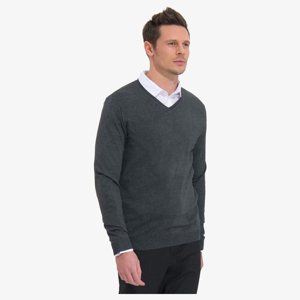 01710 - Glory men Pull col v tricot homem 01710 - anthracite_chine