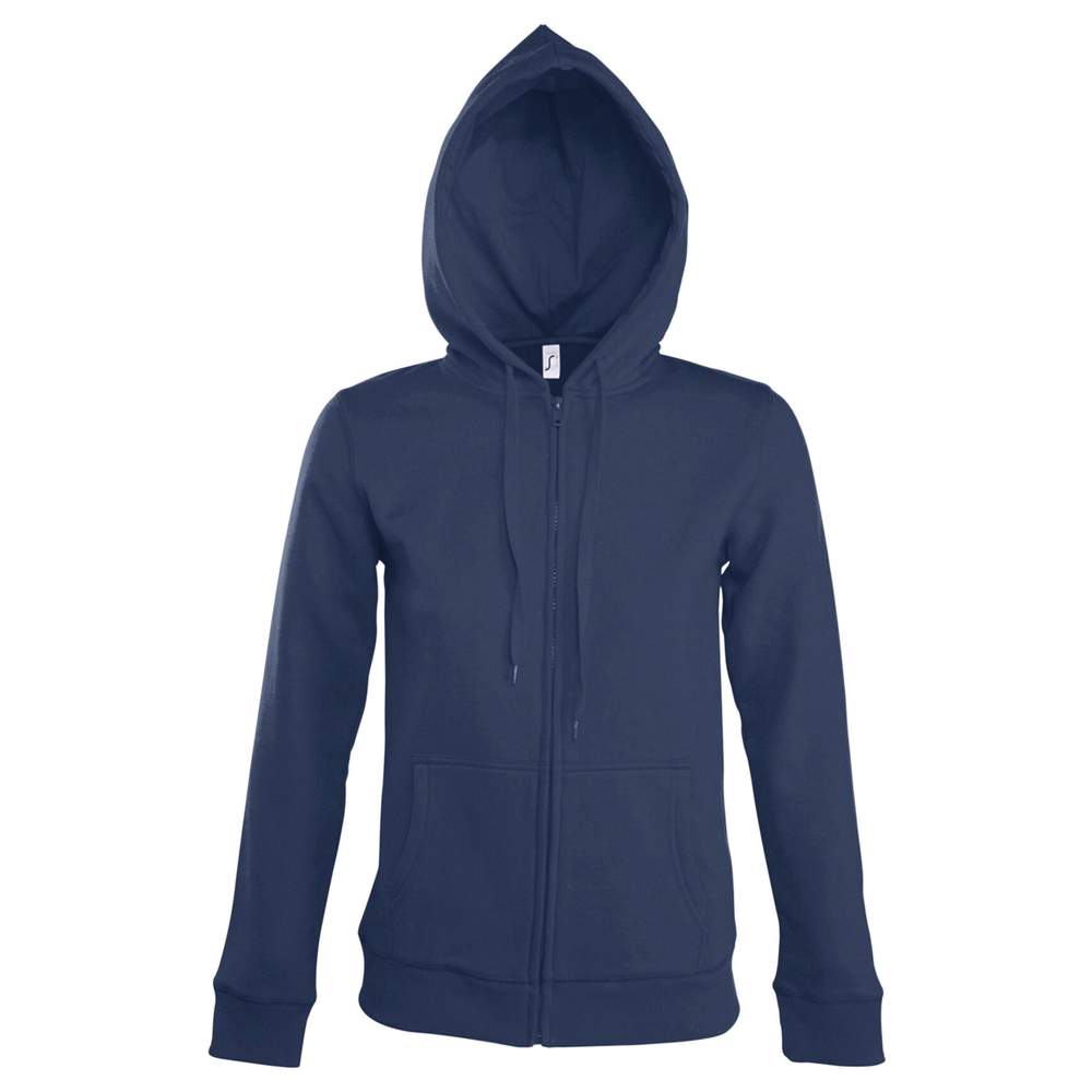 Jaqueta zíperada para mulher com capuz forrada em manta. Corte ajustado para um conforto ótimo. Ela possui dois bolsos kanguru práticos para guardar os efeitos pessoais. A parte inferior e as mangas em borda costurada elástica garantem um ajuste preciso e confortável. O capuz forrado é equipado com um cordão de ajuste na mesma cor para um ajuste personalizado.