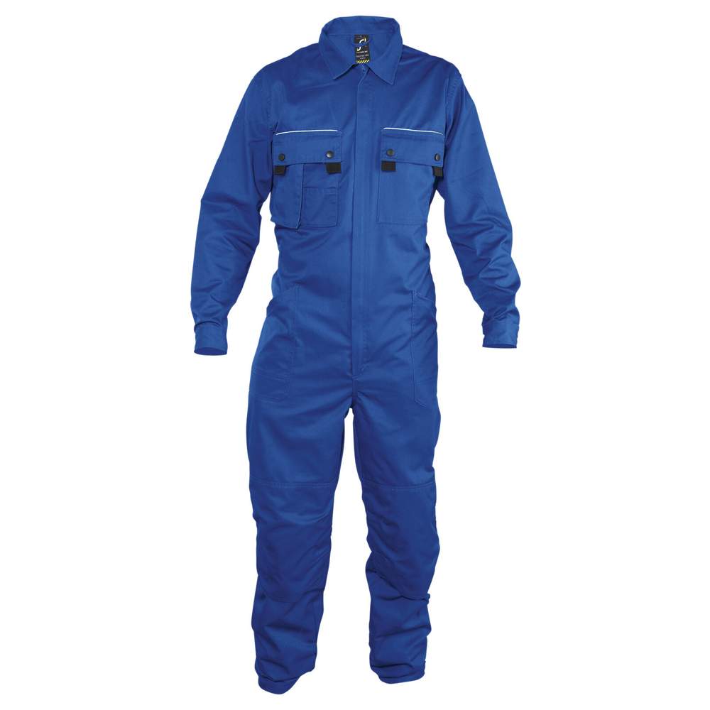 Combinação de trabalho simples zip unissex. Confeccionada em polycoton 240, oferecendo um equilíbrio entre resistência e conforto graças à sua composição de 65% poliéster e 35% algodão. Esta combinação é projetada para atender às exigências dos profissionais. Ela possui 10 bolsos práticos para o armazenamento de ferramentas e acessórios. Os bolsos com aba são realçados por passepartout refletores para uma melhor visibilidade. O espaço exterior para joelheiras permite adicionar proteção adicional durante os trabalhos que exigem ajoelhar-se. A costura elástica nas costas garante um ajuste confortável e personalizado. As abas de liberdade nas costas oferecem maior mobilidade. O zíper duplo deslizante permite uma abertura e fechamento fáceis. Etiqueta de identidade interna tecida.