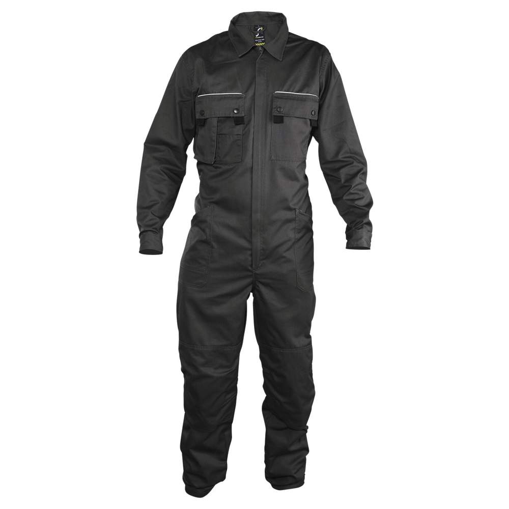 Combinação de trabalho simples zip unissex. Confeccionada em polycoton 240, oferecendo um equilíbrio entre resistência e conforto graças à sua composição de 65% poliéster e 35% algodão. Esta combinação é projetada para atender às exigências dos profissionais. Ela possui 10 bolsos práticos para o armazenamento de ferramentas e acessórios. Os bolsos com aba são realçados por passepartout refletores para uma melhor visibilidade. O espaço exterior para joelheiras permite adicionar proteção adicional durante os trabalhos que exigem ajoelhar-se. A costura elástica nas costas garante um ajuste confortável e personalizado. As abas de liberdade nas costas oferecem maior mobilidade. O zíper duplo deslizante permite uma abertura e fechamento fáceis. Etiqueta de identidade interna tecida.