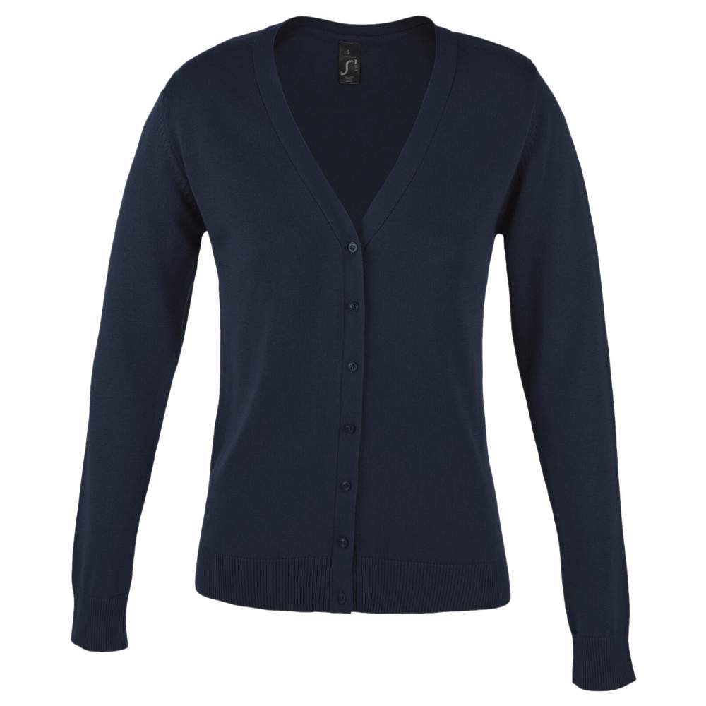 Gilete de mulher com botões col V tricotado jersey 280 composto por 50% algodão e 50% acrílico. Este gilete apresenta um estilo clássico com mangas montadas e punhos assim como bases em borda costeira 1x1 com fio elástico