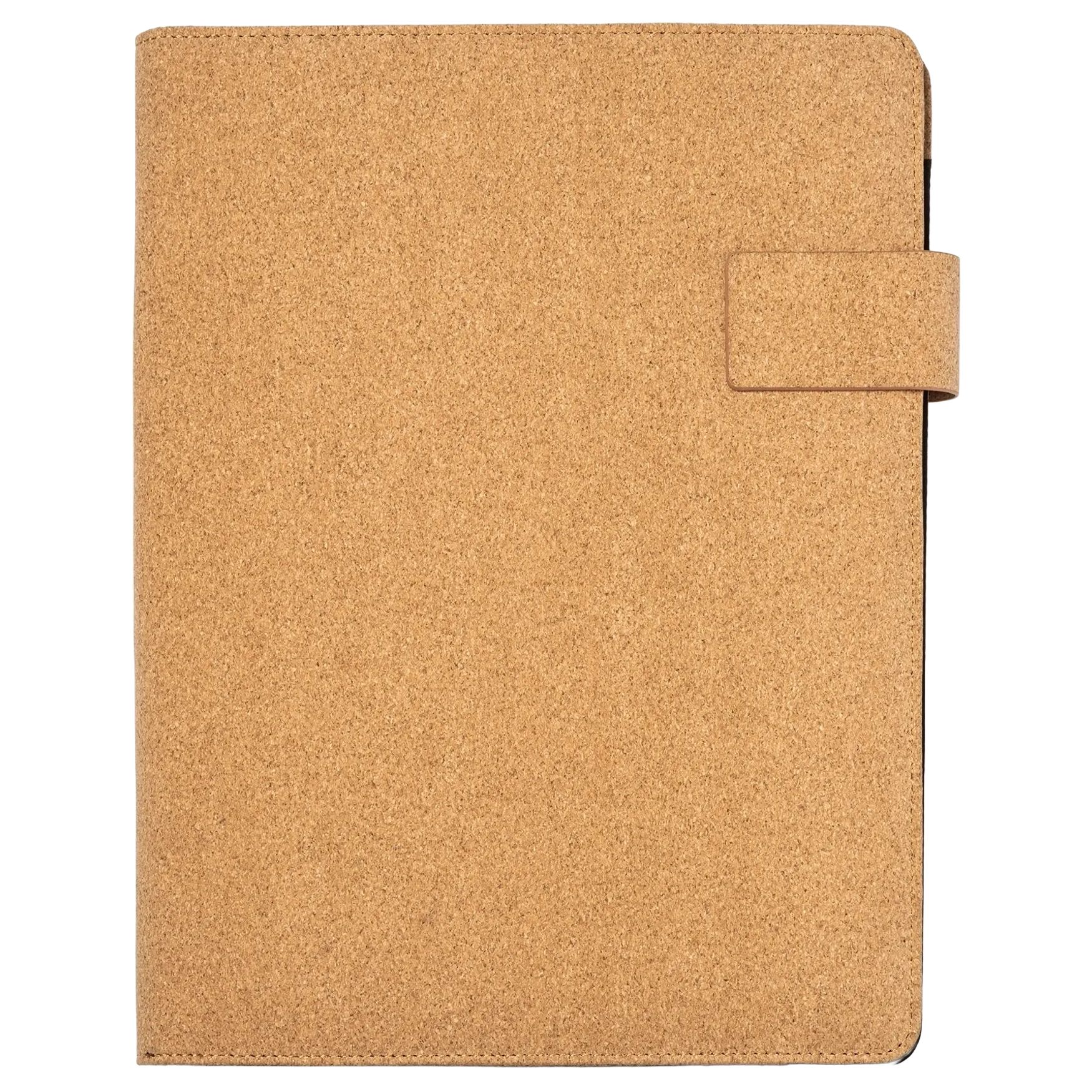 O conferencista BALOK em cortiça natural inclui um bloco de notas destacável de 30 folhas pautadas, um fecho magnético e 4 bolsos interiores com porta-canetas.