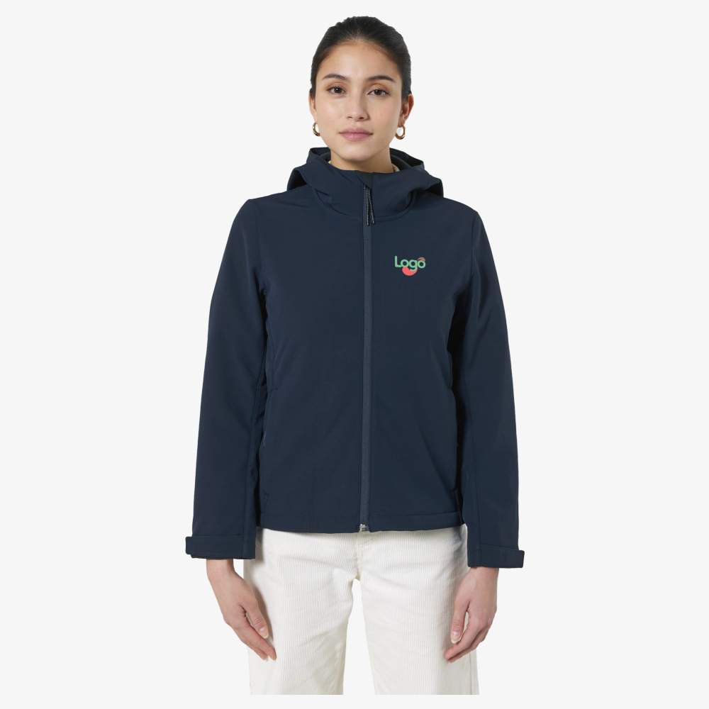 A jaqueta softshell com capuz para mulher oferece conforto ideal graças ao seu forro polar e aplicações stretch. Possui zíper frontal invisível, bolsos com zíper e punhos ajustáveis. As costuras com acabamento refinado garantem um acabamento elegante. O tratamento repelente de água e a respirabilidade tornam-na ideal para condições meteorológicas variáveis. Esta jaqueta é totalmente personalizável, permitindo a adição do seu logotipo ou dos seus visuais por meio de bordado para uma comunicação eficaz e duradoura.
