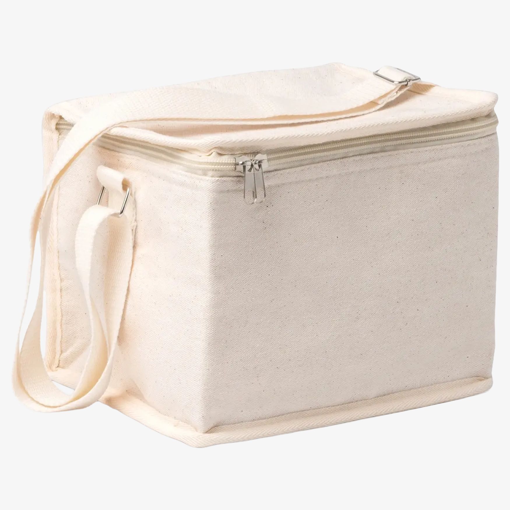 O saco térmico TOVAR em algodão com bolso frontal e compartimento principal com forro isotérmico. Pega de transporte incluída. Dimensões 22 x 17 x 17 cm.