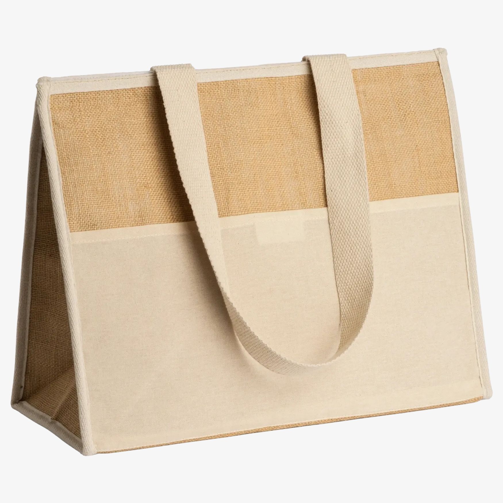 O saco isotérmico VENICE é feito em juta laminada com interior isotérmico em alumínio. Possui fecho de tira autocolante para segurança do conteúdo. Um bolso frontal e alças em algodão natural completam suas funcionalidades.