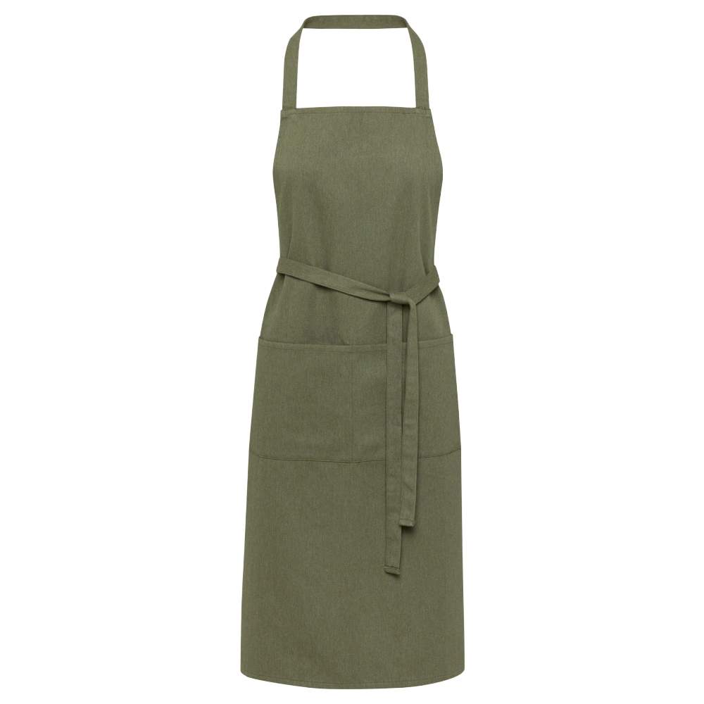 Este avental é composto de algodão e poliéster reciclados, oferecendo uma combinação de espessura, solididade e conforto. Ele possui duas bolsas práticas (22 x 20cm cada) e fecha com um laço de um metro de comprimento. A tecnologia Cyclo® está integrada, usando resíduos pré-triados para determinar a cor do fio, reduzindo assim a demanda por recursos virgens e promovendo uma economia circular. O avental também possui um rastreador Aware™ que permite aos usuários rastrear sua origem e trajetória através de um código QR, aumentando a transparência da cadeia de suprimentos.