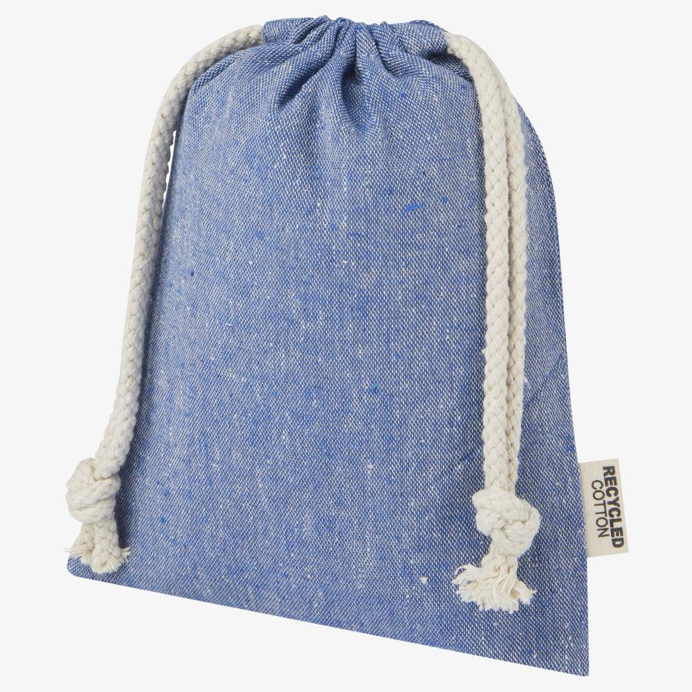 Saco de presentes em algodão reciclado com fechamento por cordão em algodão. Solução prática para oferecer presentes ou guardar pequenos objetos. As variações menores de cor são possíveis devido ao processo de produção.