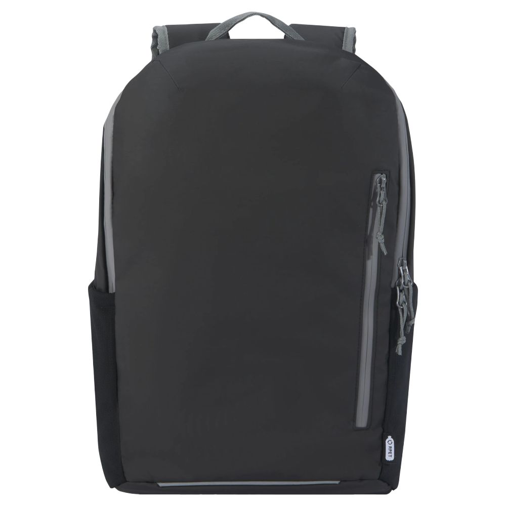 Mochila para laptop projetada para o transporte seguro de um laptop de 15 polegadas e acessórios. Fabricada a partir de materiais reciclados, esta mochila oferece uma solução sustentável para deslocamentos diários ou viagens. Ela inclui um compartimento principal espaçoso, uma bolsa dedicada para laptop acolchoada, bolsas de malha para uma organização otimizada e uma bolsa frontal com zíper para acesso rápido a pequenos objetos. As alças acolchoadas e a alça do peito ajustável garantem conforto ótimo, mesmo quando a mochila está completamente carregada. O acabamento refletivo melhora a visibilidade em condições de pouca luz.
