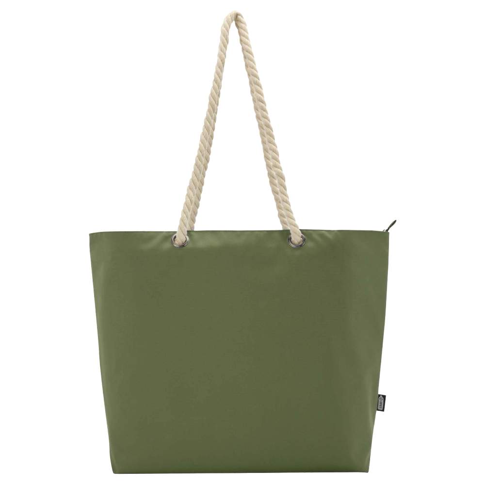 Esta sacola de compras isotérmica Panama é feita de poliéster reciclado, oferecendo uma solução prática e responsável para o transporte dos seus pertences. Ela possui um grande compartimento principal com zíper, facilitando a organização e o acesso ao conteúdo. As alças de alumínio e corda de algodão garantem um manuseio confortável e durável. Adequado para diversas utilizações, como compras diárias ou saídas ao ar livre, esta sacola alia funcionalidade e respeito ao meio ambiente.