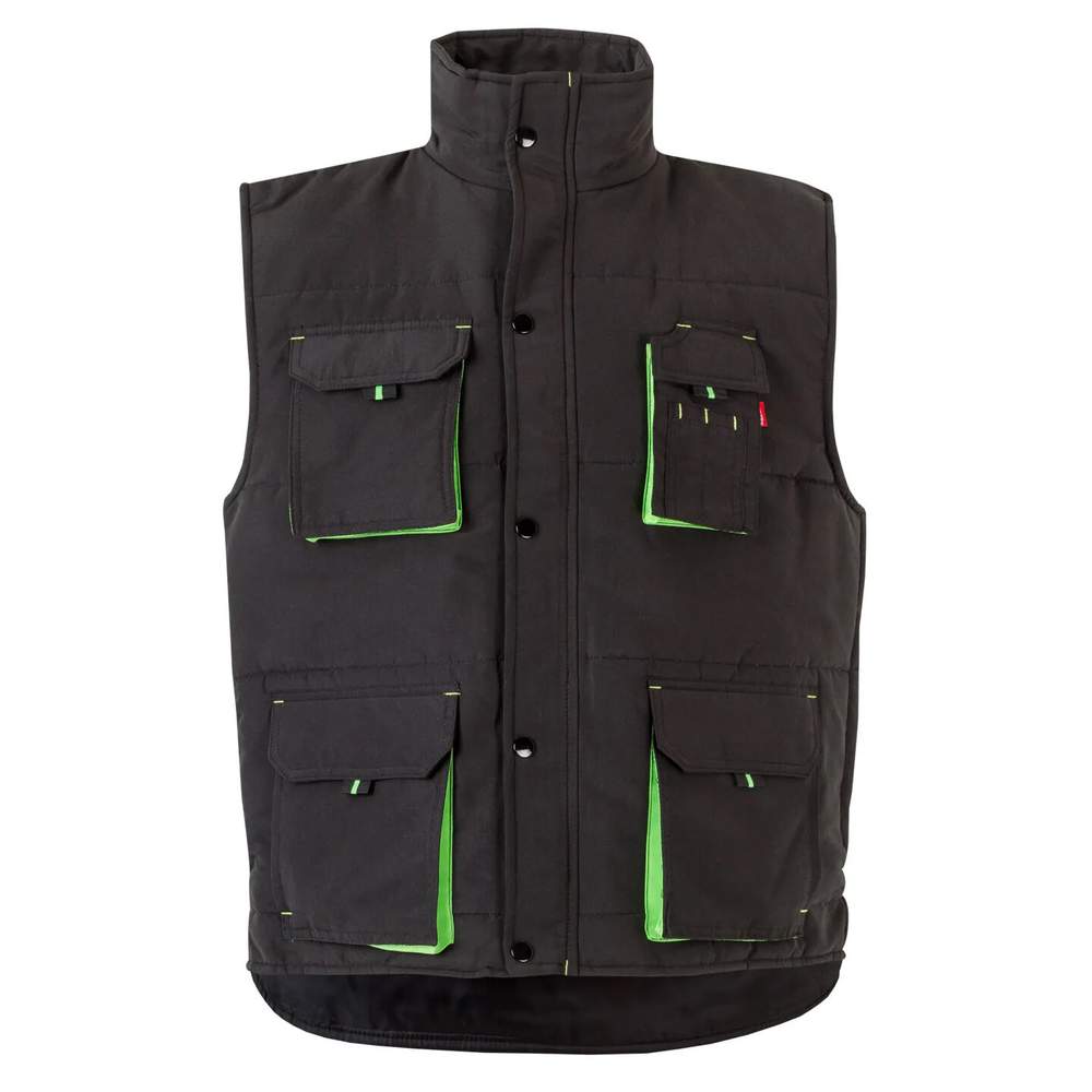 Casaco de trabalho sem mangas projetado para oferecer conforto e funcionalidade. Ele possui um fechamento central zíper e abas contrastantes nas bolsas para maior capacidade e acesso fácil. As tiras contrastantes adicionam um toque visual distinto. Este casaco é equipado com sete bolsos práticos: um bolso no peito com aba, tira e faixa de gancho e laço, duas bolsas frontais com aba, tira e faixa de gancho e laço, e duas bolsas laterais abaixo. Um bolso adicional no peito com aba oferece espaço de armazenamento com aba e faixa de gancho e laço. Um bolso interno revestido permite guardar objetos pessoais com segurança. As abas com botões pressionam garantem um fechamento seguro. As peças cortavento nas axilas oferecem proteção adicional contra os elementos.