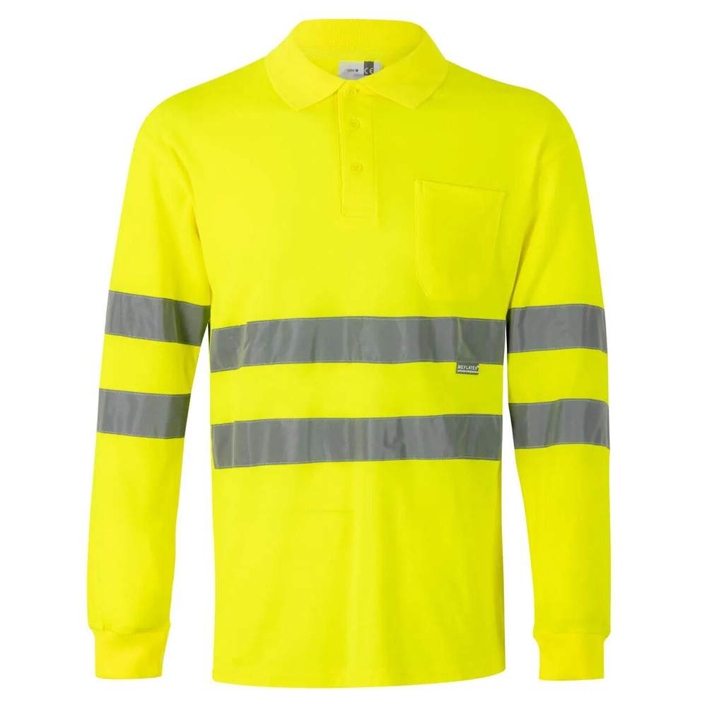 Polo de mangas compridas de alta visibilidade projetado para oferecer uma boa visibilidade em condições de pouca luminosidade. Ele é dotado de faixas refletoras posicionadas no peito e nas mangas, aumentando assim a segurança do usuário. O colarinho e os punhos em bordas costeiras garantem um conforto ótimo. Um bolso no peito está presente para facilitar o armazenamento de pequenos objetos. Este polo é projetado para ser usado em vários ambientes de trabalho que exigem uma sinalização visual eficaz.