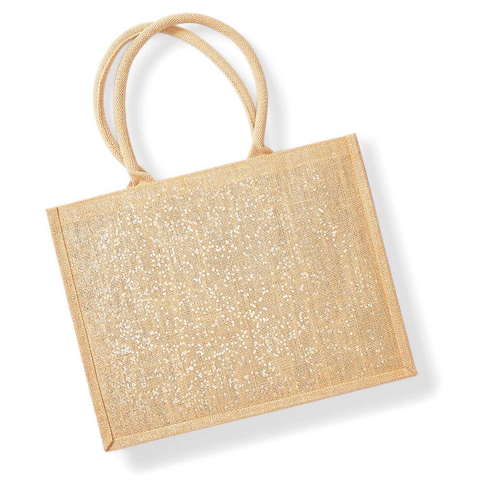 Esta sacola de compras é confeccionada a partir de uma combinação de juta estratificada e fibras metálicas, oferecendo uma alternativa prática e estética para o transporte diário. Sua capacidade de 21 litros permite acomodar diversos artigos, enquanto suas dimensões de 42 x 33 x 19 cm a tornam um acessório compacto e fácil de transportar. As alças de algodão, medindo 55 cm de comprimento, garantem um manuseio confortável e seguro. A área de impressão máxima de 34 x 24 cm oferece a possibilidade de personalizar a sacola conforme suas necessidades.