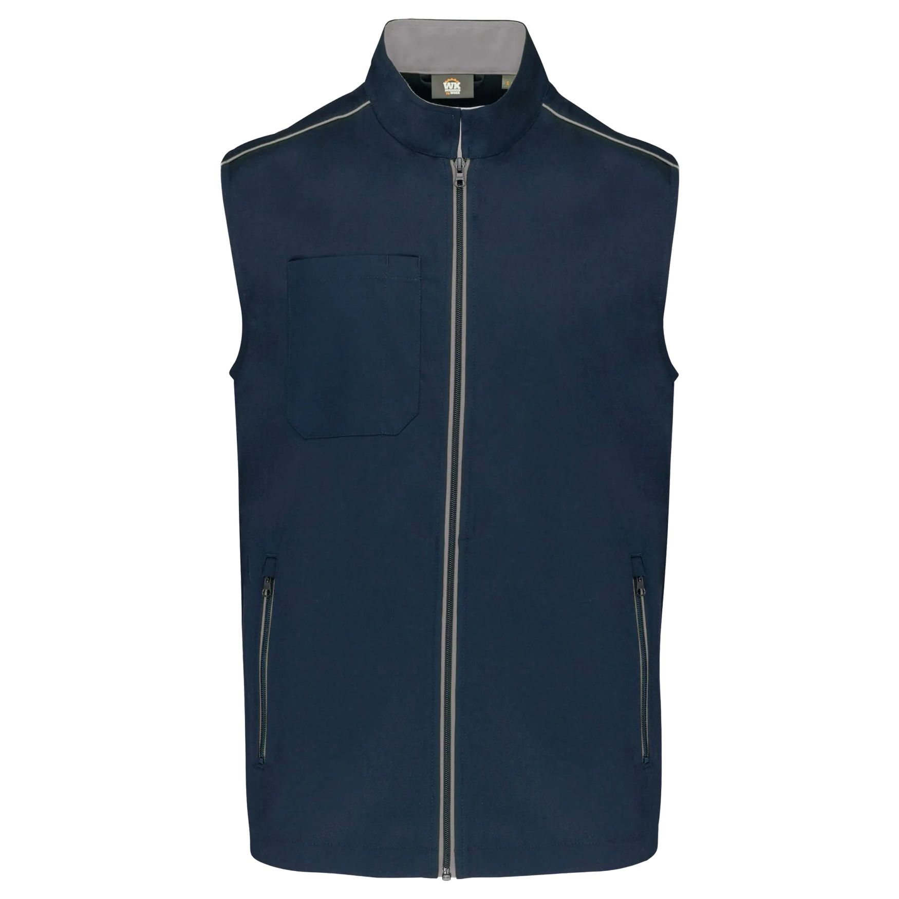 Jaqueta Day to Day homem. Esta jaqueta oferece uma solução prática e confortável para o dia a dia. Ela possui dois bolsos com zíper nos lados, além de um bolso no peito aberto à direita com caneta porta-estampa, permitindo manter os itens essenciais ao alcance das mãos. Uma etiqueta de nome no interior facilita a identificação. Seu zíper frontal e seus bolsos contrastantes conferem um estilo moderno. O passe-partout contrastante nos ombros e o colarinho interno contrastante com cordão de fixação adicionam um toque de sofisticação.