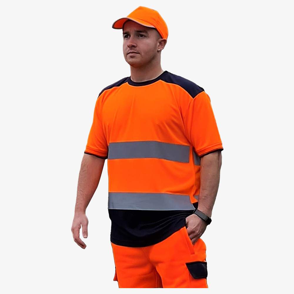 Esta camiseta bicolor de alta visibilidade é projetada para oferecer maior visibilidade em vários ambientes de trabalho. Fabricada em tecido de poliéster respirável, garante conforto ótimo mesmo durante esforços físicos. Possui duas largas faixas horizontais refletoras para melhor visibilidade e remendos contrastantes navy nos ombros, colarinho, punhos e cintura. As fendas laterais com costuras reforçadas permitem maior liberdade de movimento. Esta vestimenta é projetada sem etiqueta para maior conforto.