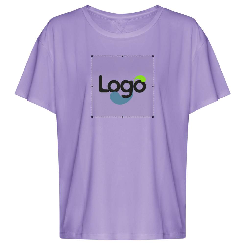 Kvinnors öppet rygg T-tröja i andningsaktiv polyester för personlig anpassning jc013 - Digital lavender