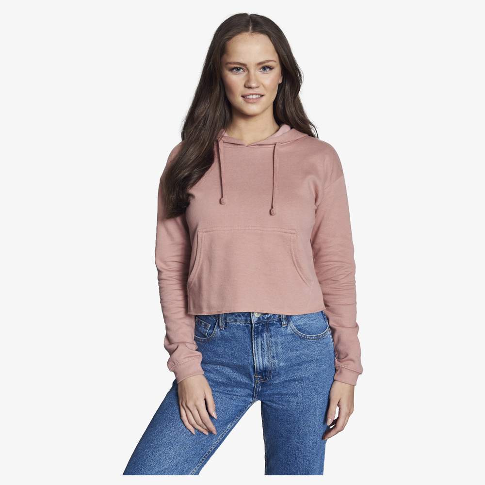 Kombinera komfort med stil med denna korta hoodie. Dubbel tjock kapuschong, monterade ärmar och tillverkad i ett bomulls- och polyesterblandat tyg. Att bära med jeans eller leggings för ett trendigt utseende. Avslappnat tjejigt snitt. Kort snitt, bar axel. Dubbla stygnsdetaljer. Dubbel tjock kapuschong. Platt tråd i slingor. Tyg av mjuk bomull, perfekt för att trycka på ytan. Avtagbar etikett, idealisk för att ersätta den med sin egen märke. Kangorupåse. Kant med rå kant, omslagsstygn.
