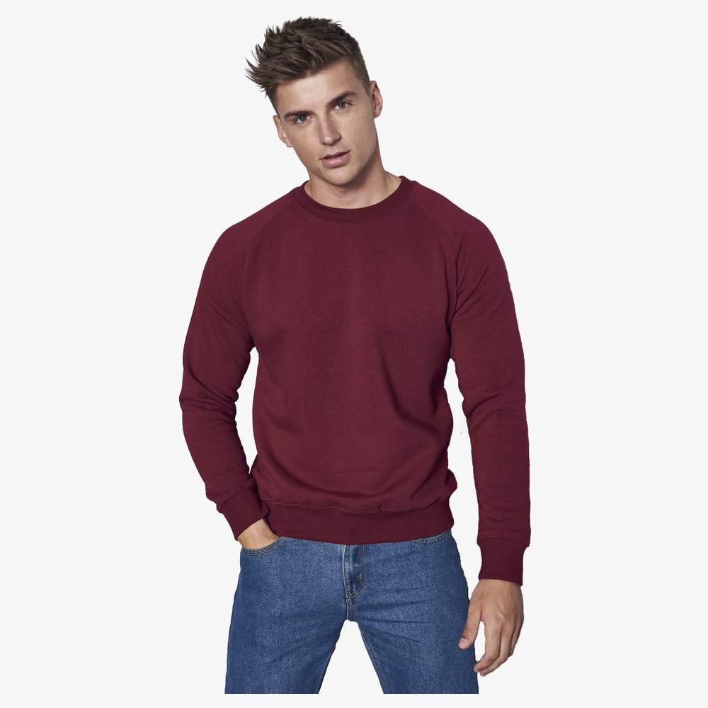 En samtida och modern tröja som passar olika stilar. Bär den med jeans för en avslappnad look. Denna tjocka tröja har raglanärmar, kant och ärmkanter i revbana samt ett halssnitt nära halsen. Dubbla stygnsdetaljer.