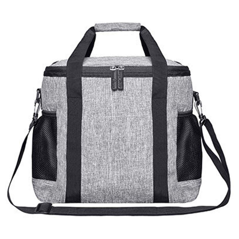 Isolerad väska i polyester 600D i grå. Ett huvudfack med dragkedjefästning. Två sidfack i airmesh med elastiskt snöre. Avtagbar transportrem med justerbar längd. Två bärremmar med rembördig autoagrip. Isolering i skum. Alla dragkedjor i svart. Dragkedja i gummi med relief "Bags2Go". Volym: ca 18 liter. Leverans utan innehåll/dekoration. Sammansättning: 100% Polyester. Dimensioner: 57 x 30 x 15 cm