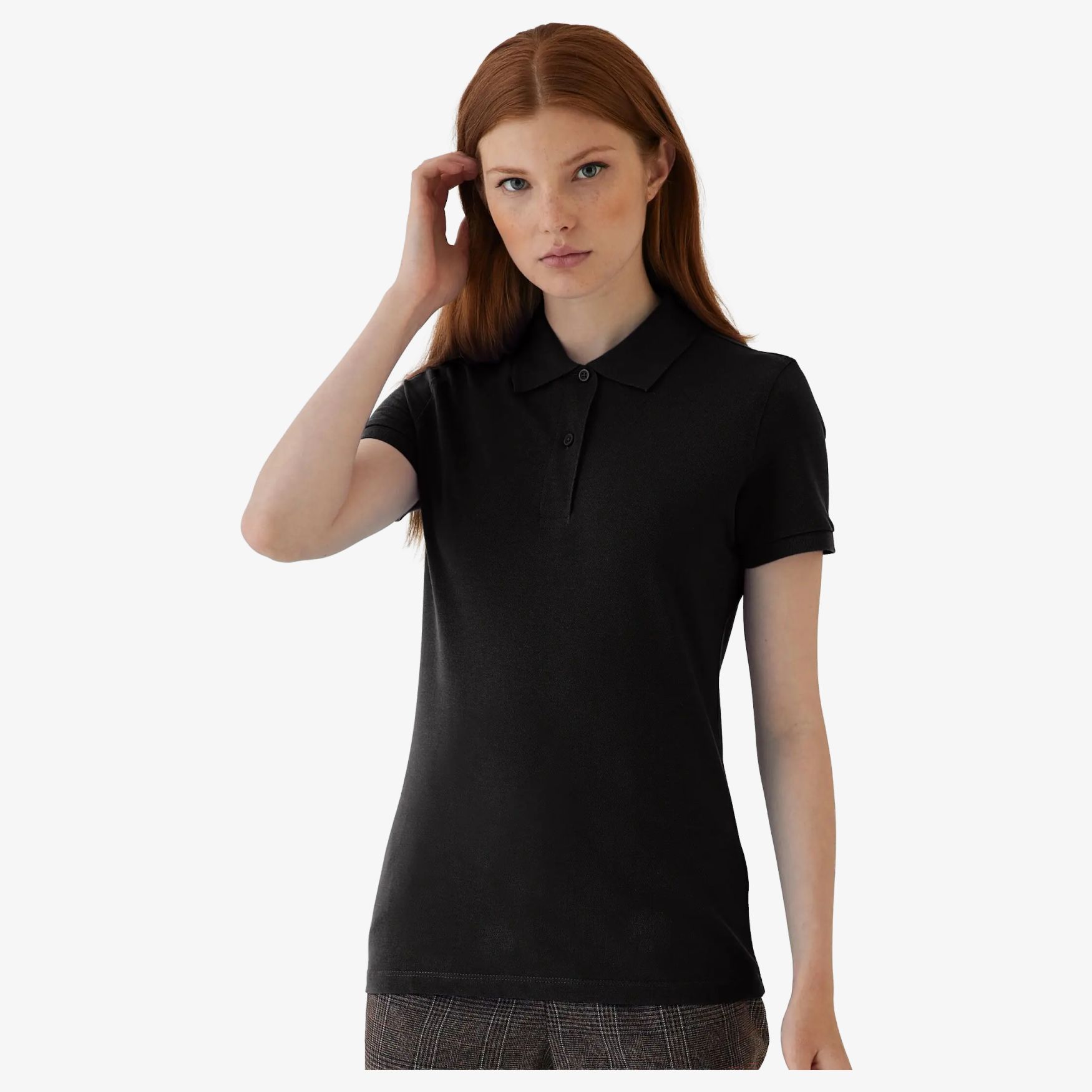 Polo korta ärmar 100% förförtränkt och Ringspun certifierat Biologiskt eller Biologiskt i omvandling. Knappband med 2 knappar och renhetsband. Modern kvinnlig passform. Ingen märkesetikett. Sidstygn. Krage och ärmkanter i 1x1 ribba.