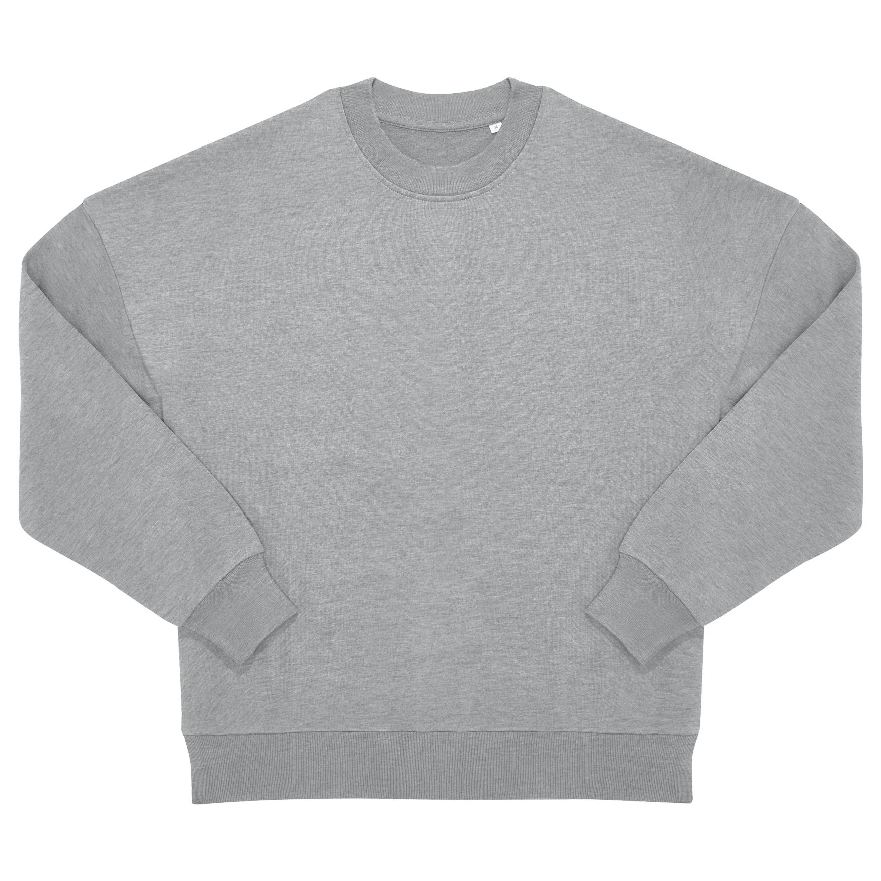 Sweatshirt med borstad fleeceinsida har en sammansättning av 80% ringspunnen förkrympt bomull och 20% återvunnen polyester. Den innehåller teknik som begränsar krympning, med en 100% bomullssida för lämplig tryckbarhet och mjuk känsla. Passformen är lös med sänkta axlar och sidorsömmar. Ribbstickade manschetter och fåll 1x1 utan etikett.