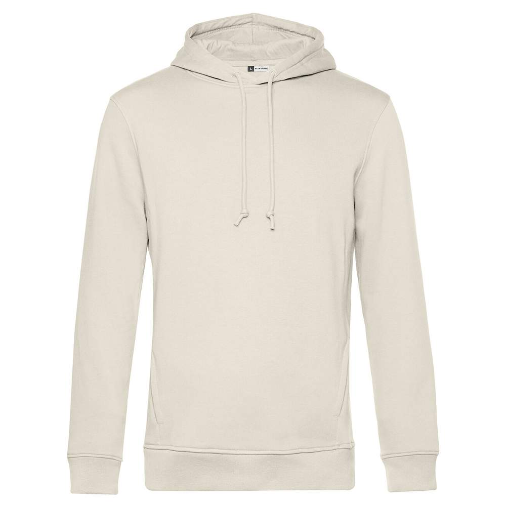 Trendigt sweat-shirt med huva tillverkat av ekologisk bomull eller omställning och återvunnen polyester. Den har en fodrad huva med dragsnör, ett renhetsband i zigzagform och fickor på sidorna. Etiketten som syns på kragen säger « Hej! Jag är Organic ». Det finns ingen märkesetikett och insidan är skavd för ökad komfort. Tyget är tåligt och har en extremt mjuk känsla.