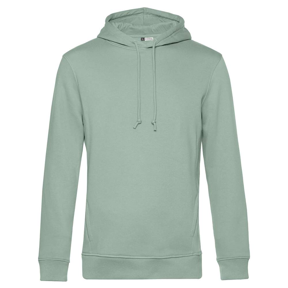 Trendigt sweat-shirt med huva tillverkat av ekologisk bomull eller omställning och återvunnen polyester. Den har en fodrad huva med dragsnör, ett renhetsband i zigzagform och fickor på sidorna. Etiketten som syns på kragen säger « Hej! Jag är Organic ». Det finns ingen märkesetikett och insidan är skavd för ökad komfort. Tyget är tåligt och har en extremt mjuk känsla.