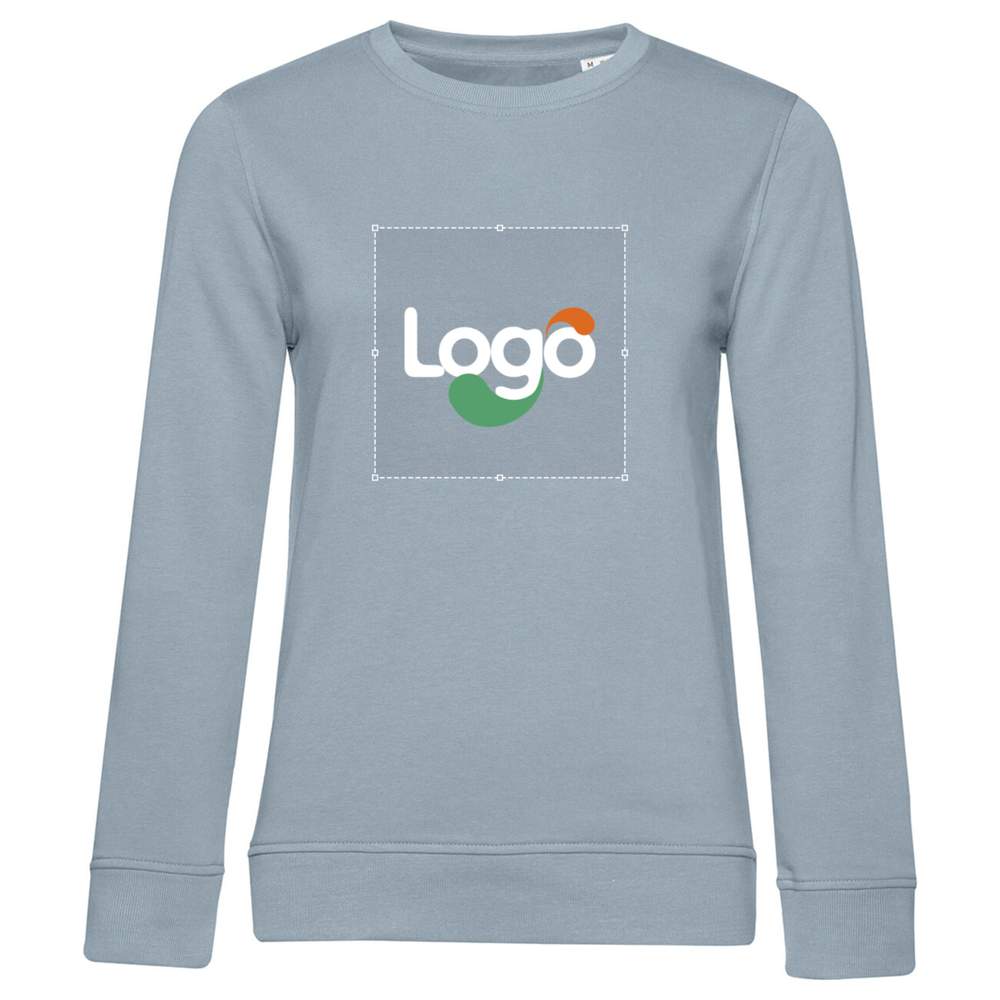 Damtröja med runda halsorganisk eller omställningsorganisk. French Terry: inre del utan slip. Ingen märketikett. Synlig etikett i halsen « Hi! I'm Organic ». Sidostygn. Feminin skärning. Organisk bommull. Hals, ärmar och midja med ribbkrage. Raka ärmar. Renhetstape med zickzackmönster. Yttre sida 100% bomull. Inre del utan slip. Hållbart material och ultra-mjukt tryck. Möjlighet att personalisera med broderi eller ditt logotyp.