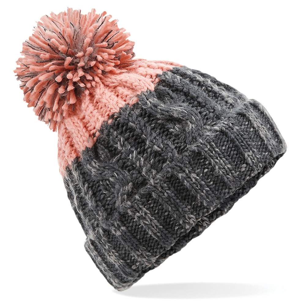 Den här tjocka twiststickade bönnaren är konstruerad med flera trådar för ökad komfort. Den har en lyxig tofs och ett termiskt band efterliknande får för optimal värme. Dess reverskonstruktion tillåter anpassad dekorering. Modellen är i storlek och tillverkas av 100% acryl.