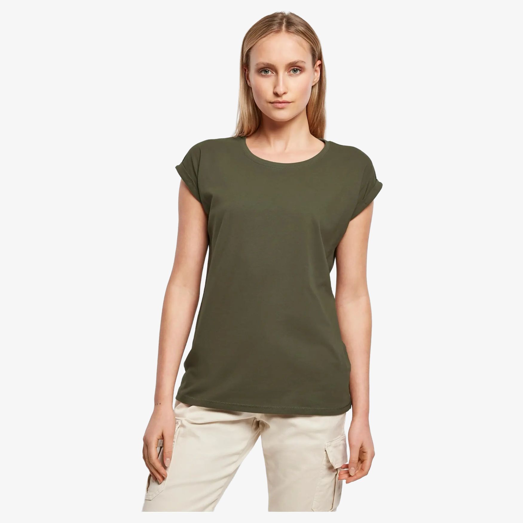 BY021 - Ladies extended shoulder tee tröja bomull viskos by021 - olive