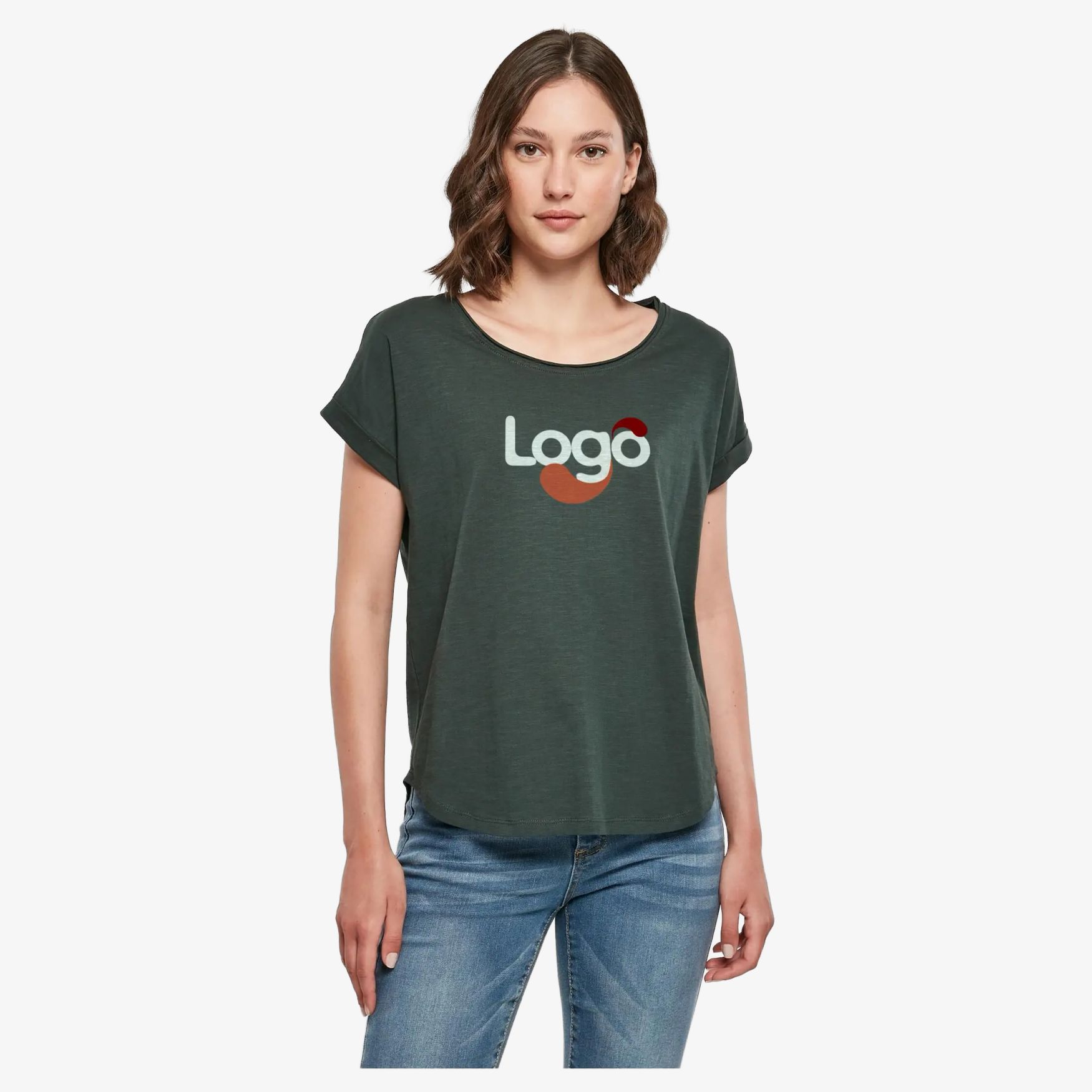 Damer lång slub t-shirt kortärmad by036 anpassningsbar