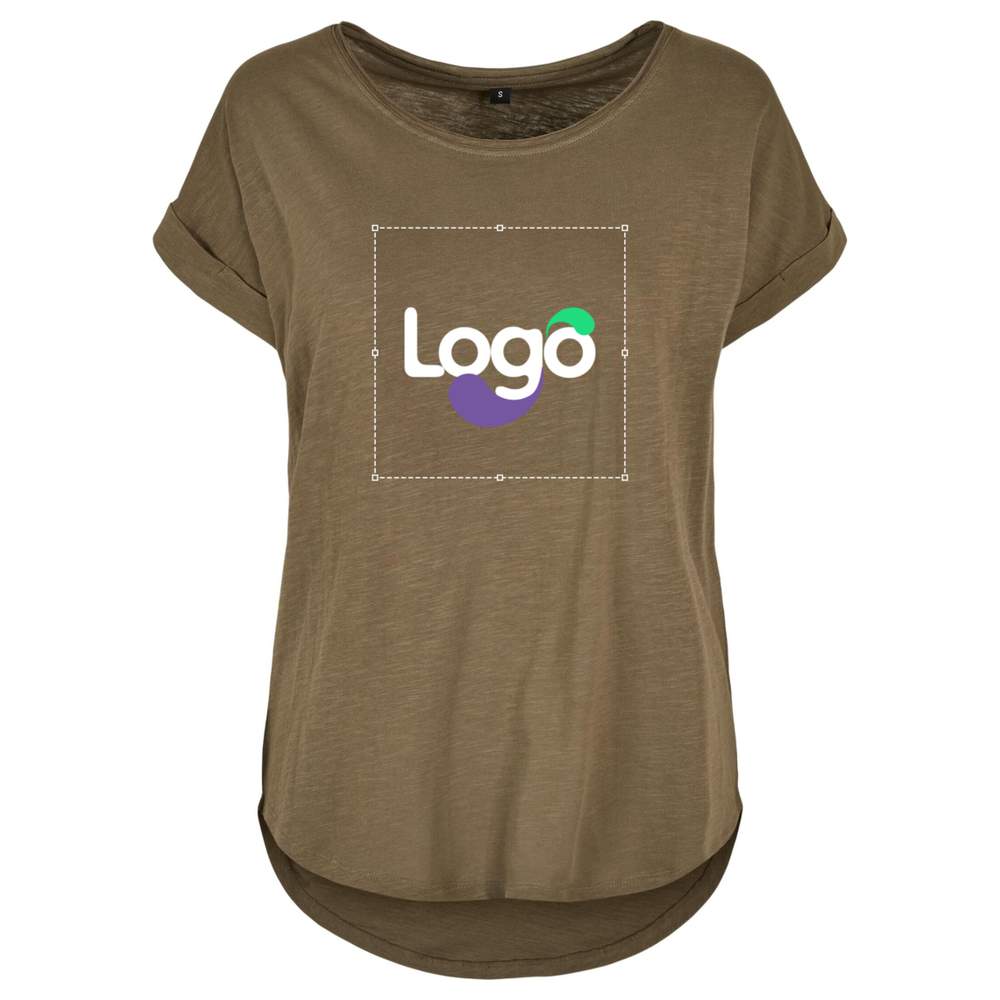 Damer lång slub t-shirt kortärmad by036 anpassningsbar - Olive