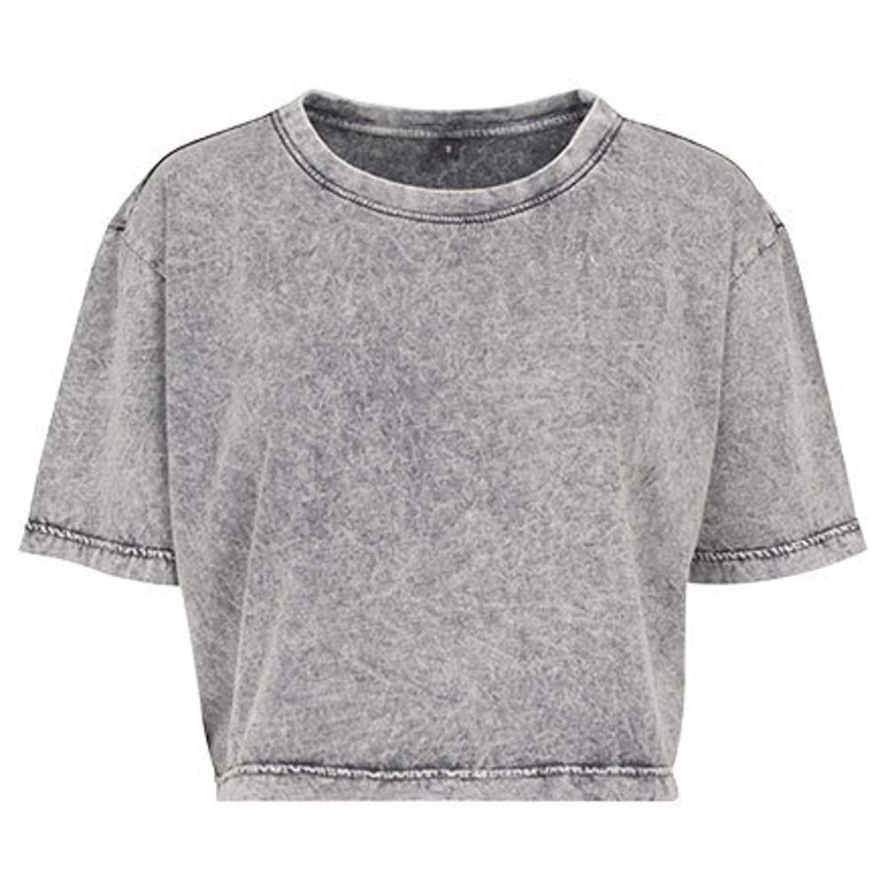 Ladies acid washed cropped tee by054 - Grey black