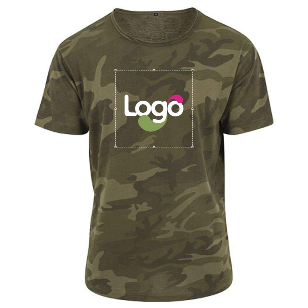 Tee-shirt Camo tee i bomull och polyester, erbjuder en oversize-skärm och optimal komfort. Den har en märkesfri storleksetikett, uppsatta ärmar, en renhetsband och en fin kant. Dubbla sömmar vid kantlinjen säkerställer en god hållbarhet. Denna tee-shirt är idealisk för att personalisera efter dina behov och kan ta emot din logga eller visuell. Den kan personaliseras efter dina önskemål för att spegla din varumärkesidentitet.