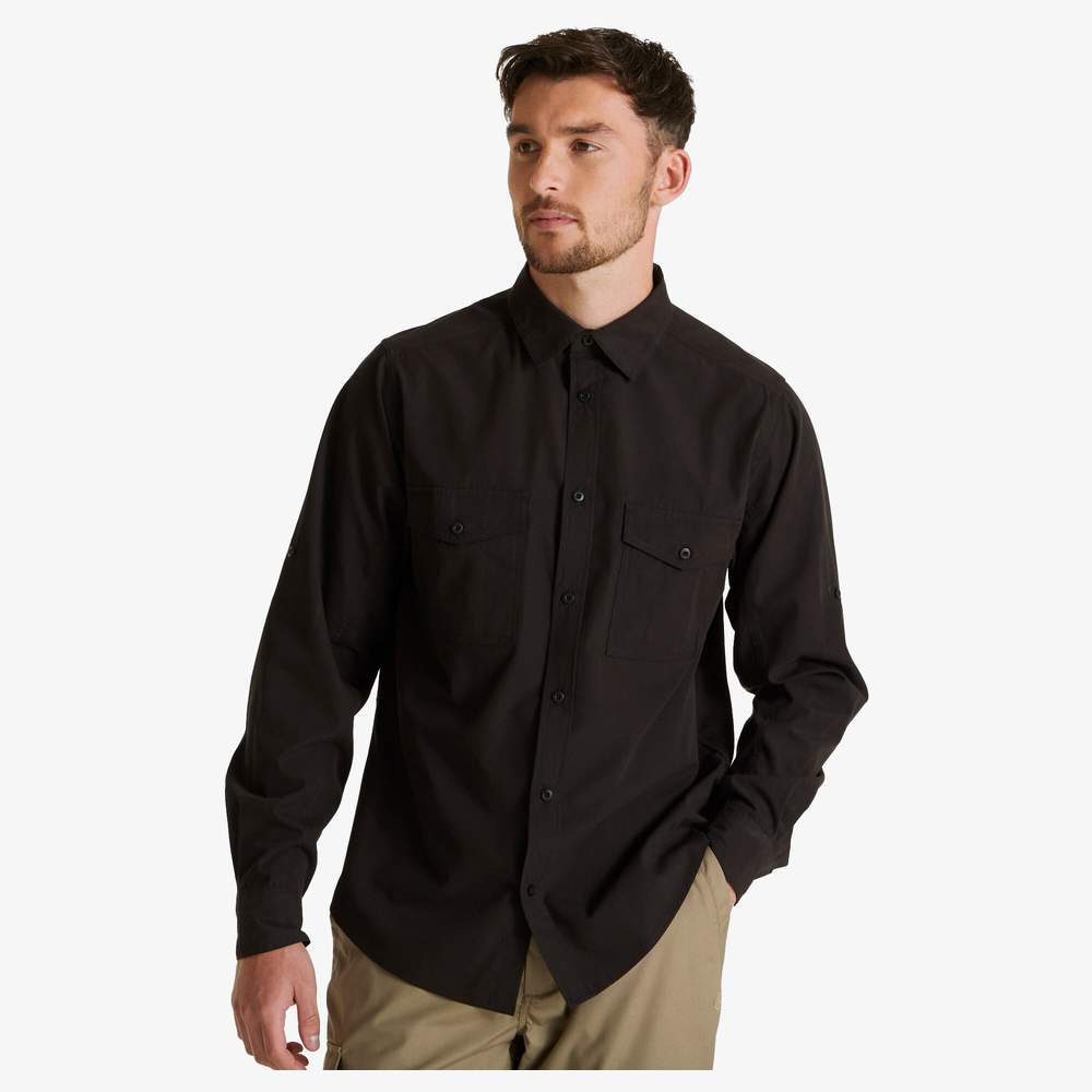 Denna långärmade skjorta är designad för att erbjuda komfort och funktionalitet. Dess väv resistent mot insektsbett och solskydd UPF 40 gör den till ett idealiskt klädesplagg för utomhusaktiviteter. Den släppta skärningen ger optimal komfort, medan lätt underhåll förenklar daglig användning. Den har tre fickor, varav två knäppbara bröstfickor och en säkerhetsficka med bläck, som erbjuder praktisk och säker förvaring.