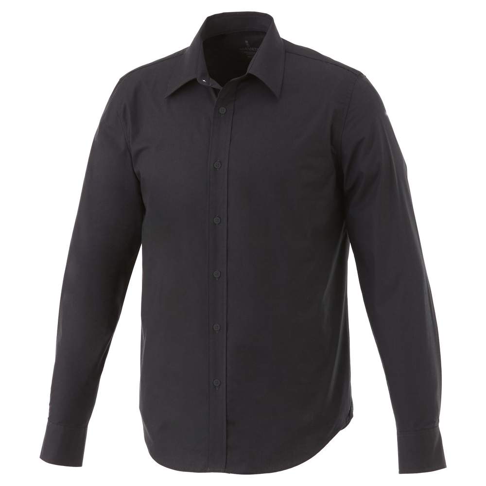 Långärmad skjorta konstruerad för att kombinera komfort och estetik. Den har en klassisk passform som passar olika kroppsformer. Konstruktionen inkluderar en dold knäppknapp för en ren utseende. Det sträckbara tyget ger optimal rörelsefrihet. Justerbara ärmar med enkel vikning lägger till en touch av sofistikering. En satängpirr inuti kraven förstärker vår omsorg för detaljer. Graverade knappar matchar helheten med elegans. Den huvudsakliga etiketten i transfer säkerställer ökat komfort. Denna modell är tillverkad av poplin för en mjuk och behaglig känsla.