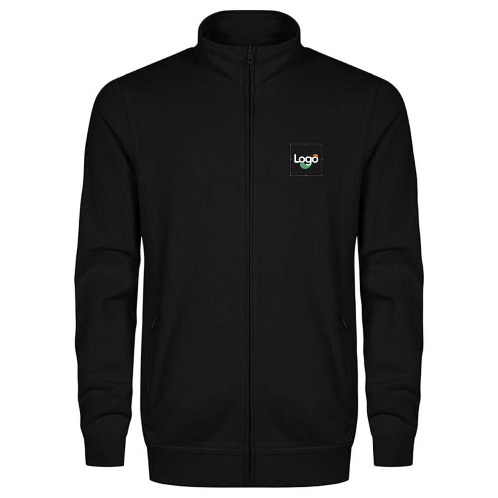 Zippad tröja med slät yta som inte fluffar. Krage, ärmar och midja med elastik. Rengöringsremsa. Dold zippstängning. 2 zippade fickor. Höjdsatt krage. Rengöringsremsa. Möjlighet att personliggöra i broderi för ett unikt utseende.