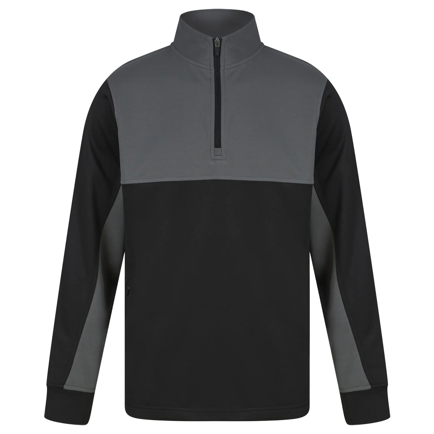 Den stickade överdelen är en sport-sweatshirt med dragkedjekrage, kontrastpaneler på ärmarna, sidfickor med dragkedja och borstad insida. En yta som lämpar sig för anpassning.