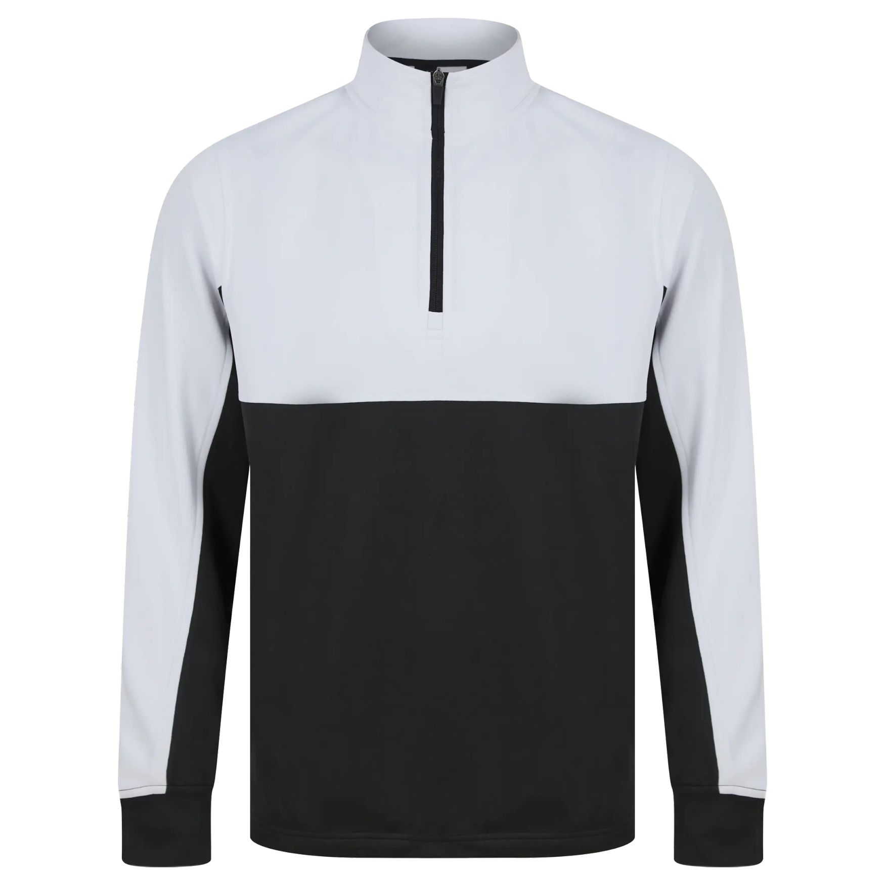 Den stickade överdelen är en sport-sweatshirt med dragkedjekrage, kontrastpaneler på ärmarna, sidfickor med dragkedja och borstad insida. En yta som lämpar sig för anpassning.