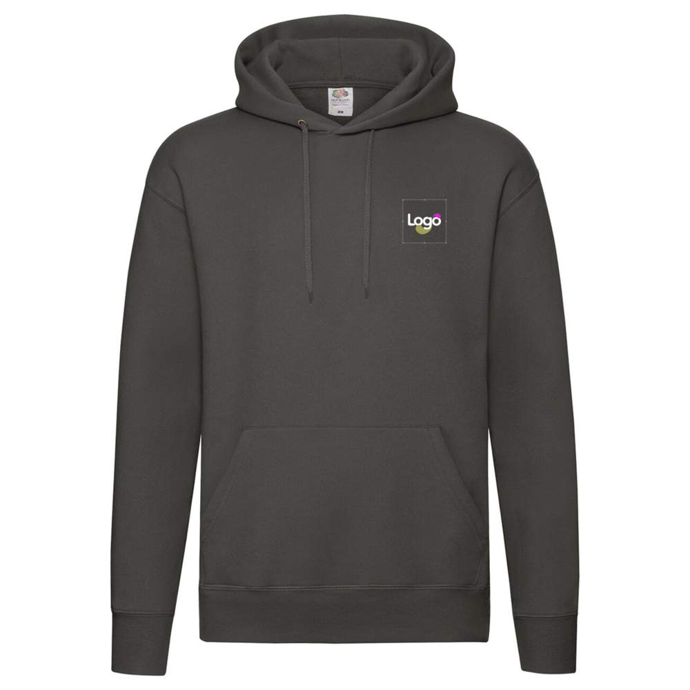 Premium hooded sweat FRUIT OF THE LOOM 62-152-0 är tillverkad av bomull ringspun och polyester för optimal komfort och ökad hållbarhet. Den har en kapuschong som är fodrad med snöre i samma färg, samt ett praktiskt kängurufack. Bomullselastan banden på midjan och ärmarna säkerställer en perfekt passform. Denna hoodie är idealisk för personliggöring genom broderi eller tryckning.
