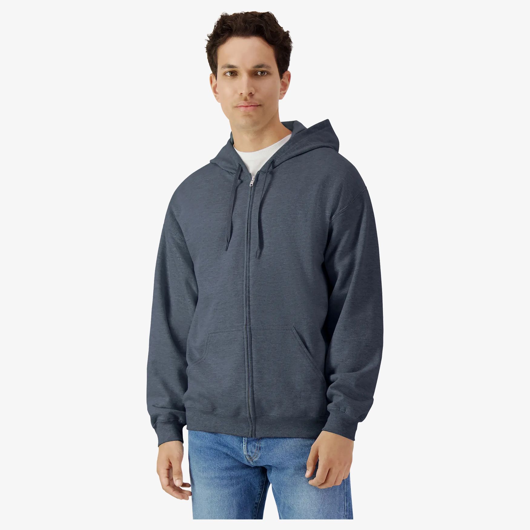 Softstyle huvtröja med dragkedja är en huvtröja med dragkedja för vuxna, med borstad insida, huva fodrad med jersey och magficka. Klassisk passform och 1x1-ribb vid muddar och nederkant ger en stabil passform i vardagen.