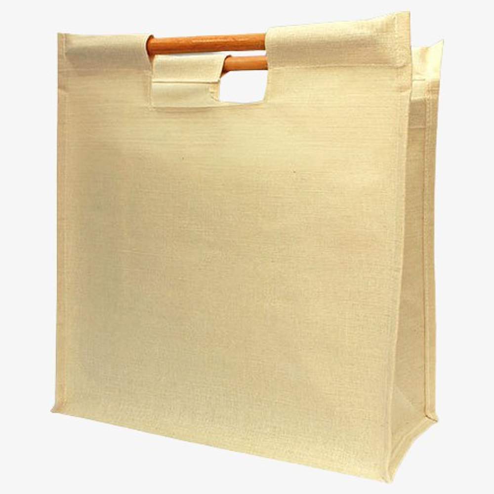 Väska i jute och bomull, designad för daglig användning. Den kombinerar lätthet och hållbarhet, och erbjuder ett praktiskt sätt att transportera olika föremål. Insidan är plastbelagd för bättre skydd av innehållet och underlättar rengöring. Bambuhandtag ger en naturlig touch och säkerställer en bekväm handtagning. Denna väska är ett hållbart alternativ till plastpåsar, lämplig för inköp, utflykter eller transport av personliga ägodelar.