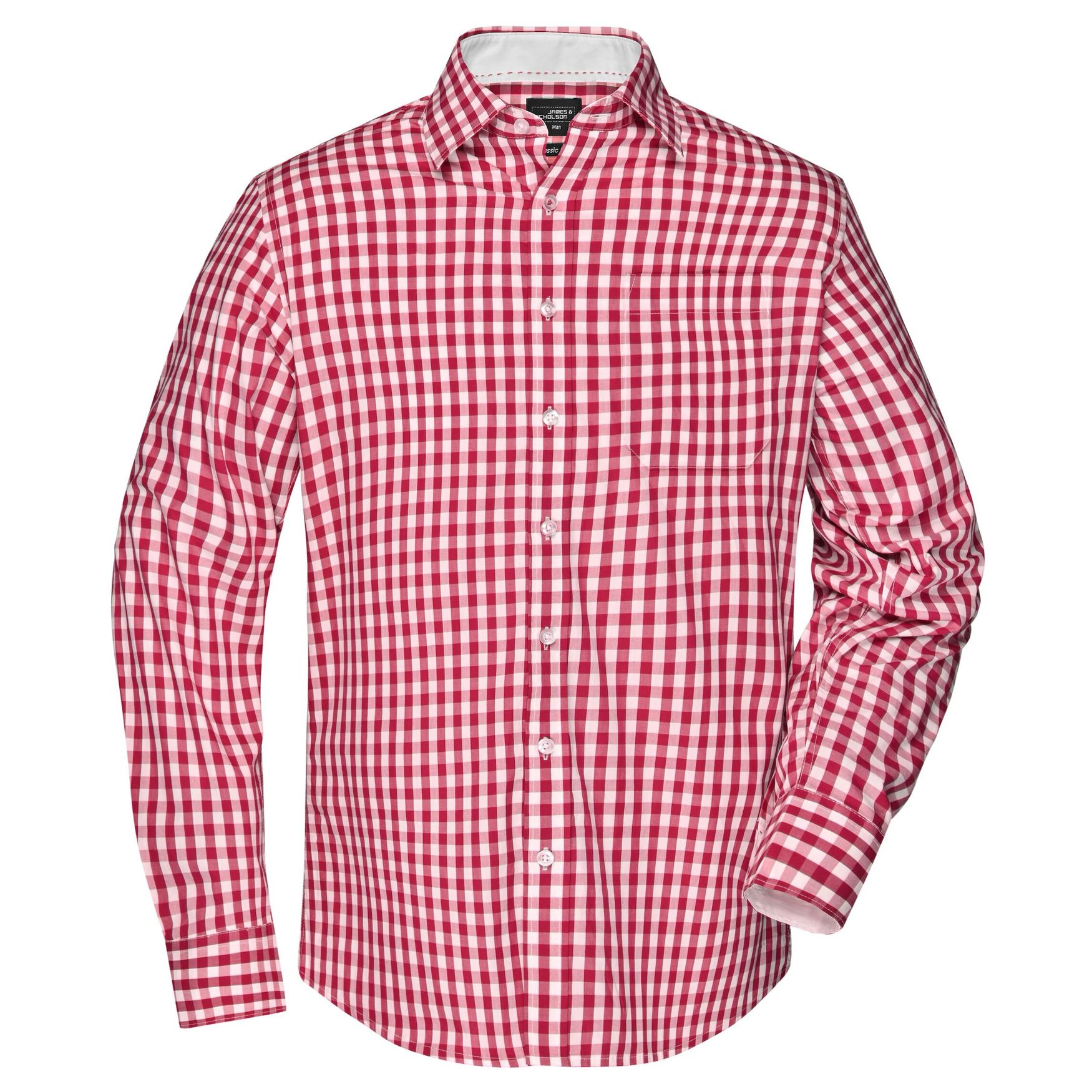 JN617 - Herrarnas kontrollerade skjorta Klassisk bomullsjaMES&NICHOLSON jn617 - red/white
